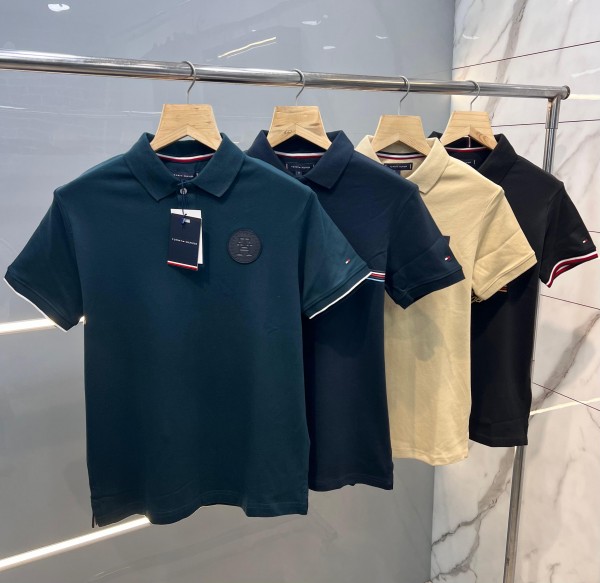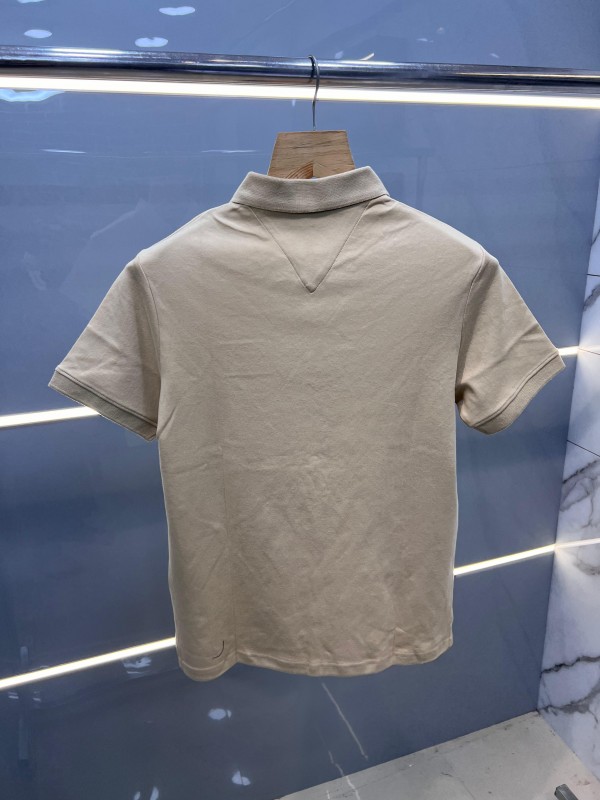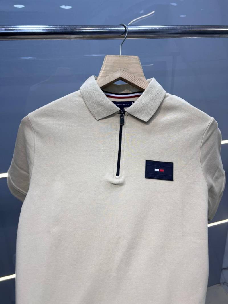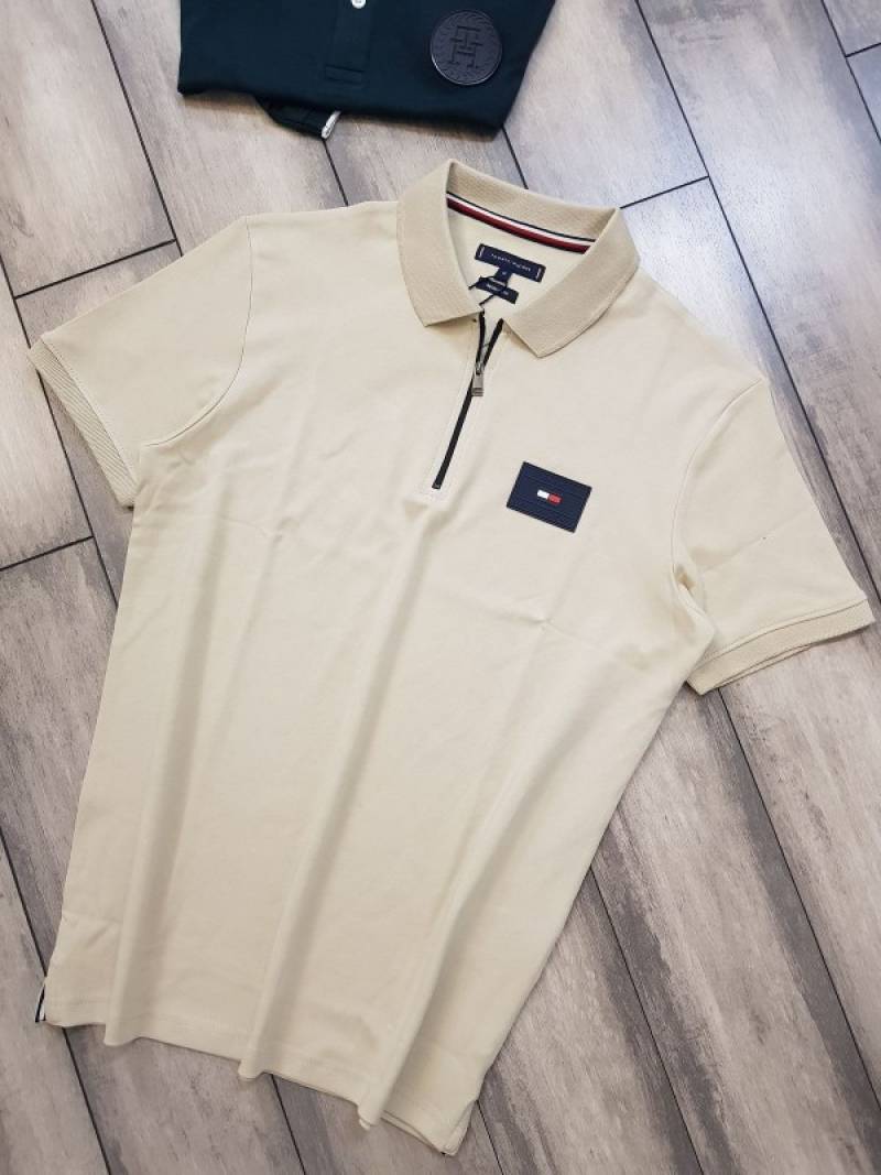 Tomm_y Hilfige_r Beige Premium Imported 240 GSM Interlock Cotton Lycra Fabric Polo Tshirt with Patch Logo Zip Style Sale offer (561)