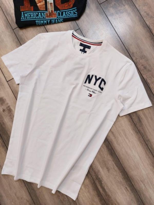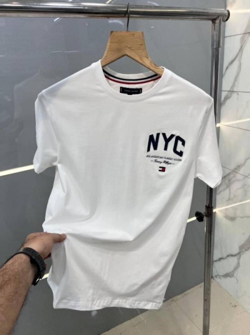 Tomm y Hilfige r Premium Imported Round Neck T Shirts Printed Design White 2366