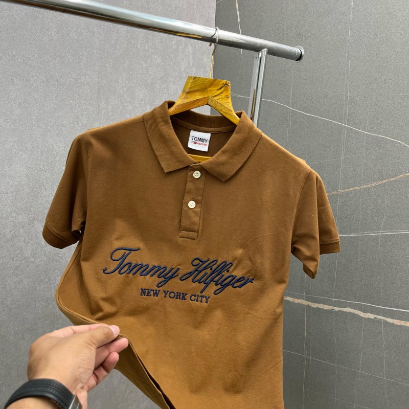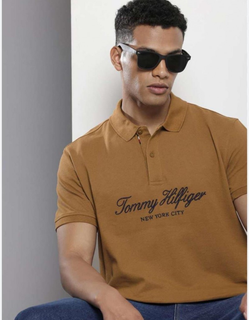 SALE Tomm_y Hilfiger Tan Premium Polo Neck Tshirt 430
