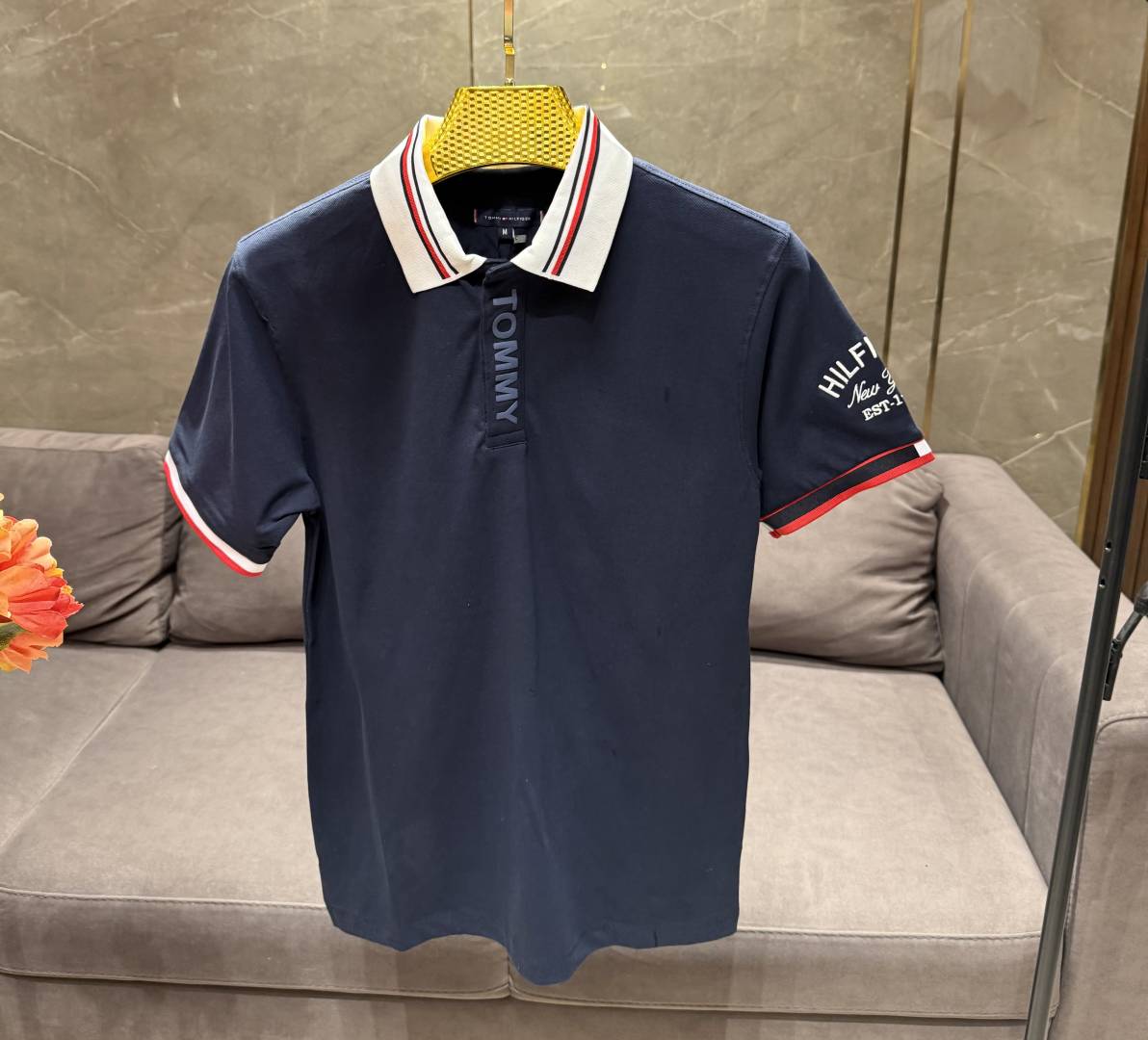 Tommy Hilfige r Navy Premium Polo TShirt with 240 gsm interlock cotton lycra fabric with Embroidery Logo And Branding Half ZIP 2791