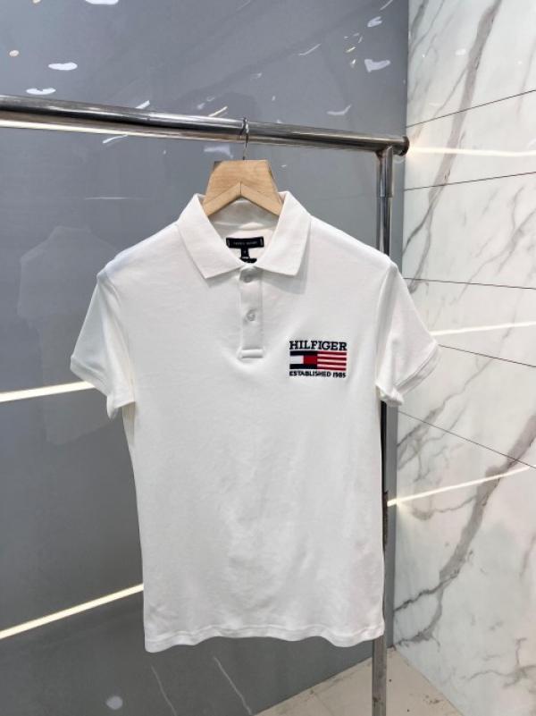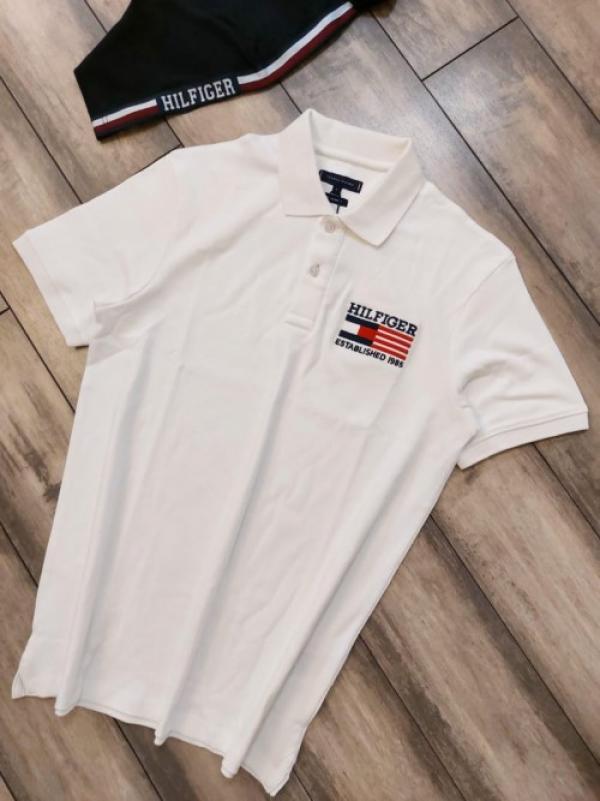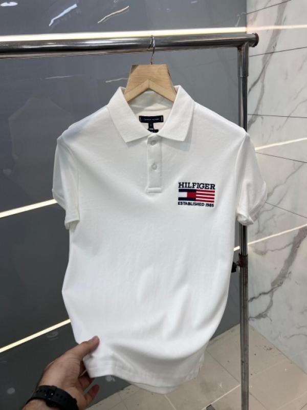 Tommy Hilfige r White Premium Polo TShirt with 240 gsm interlock cotton lycra fabric with Emboss Logo 2547