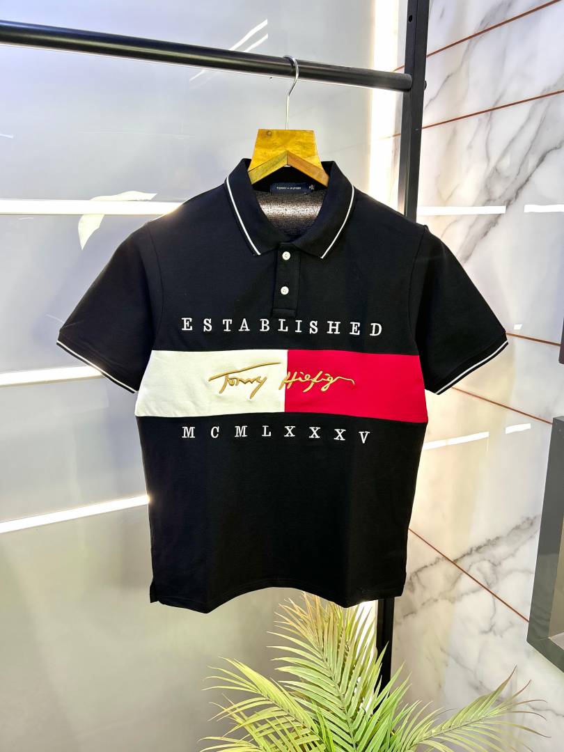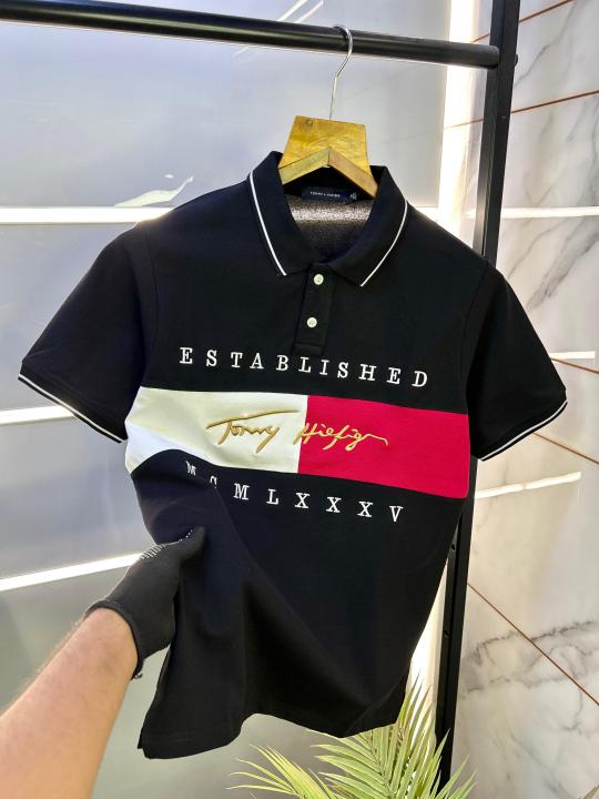 Tommy_Hilfiger Black Embroidery Print Premium Polo T-shirt F2459-BL
