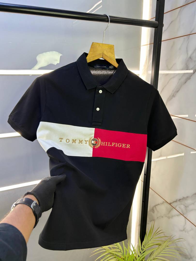 Tommy_Hilfiger Black Embroidery Print Premium Polo T-shirt F2575-BL
