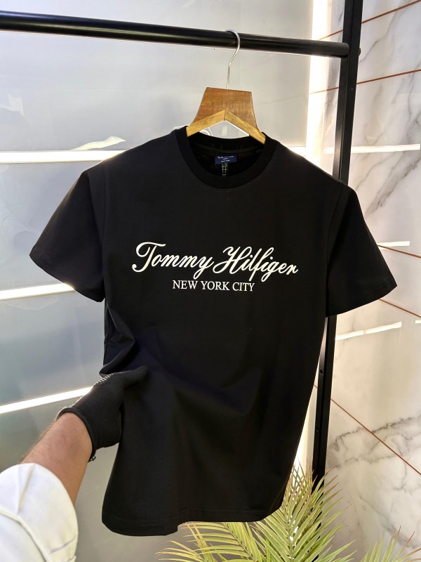 Sale Tommy_Hilfiger Black Premium Round Neck Printed T-shirt F2350-BL