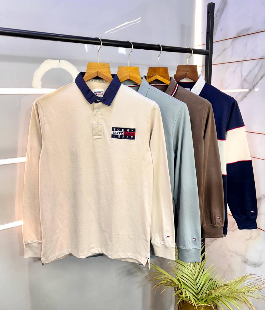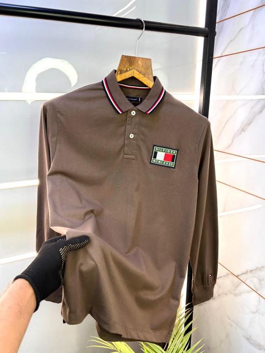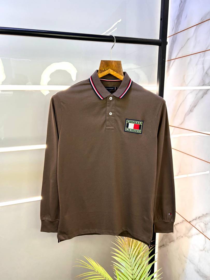 Tommy_Hilfiger Brown Full Sleeves Polo Neck Premium Collar T-shirt BRO-M-F2017
