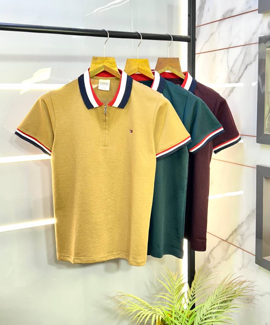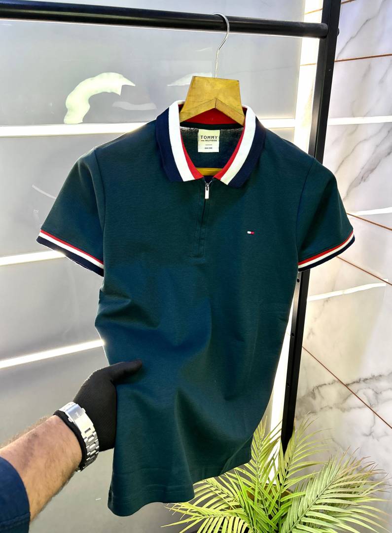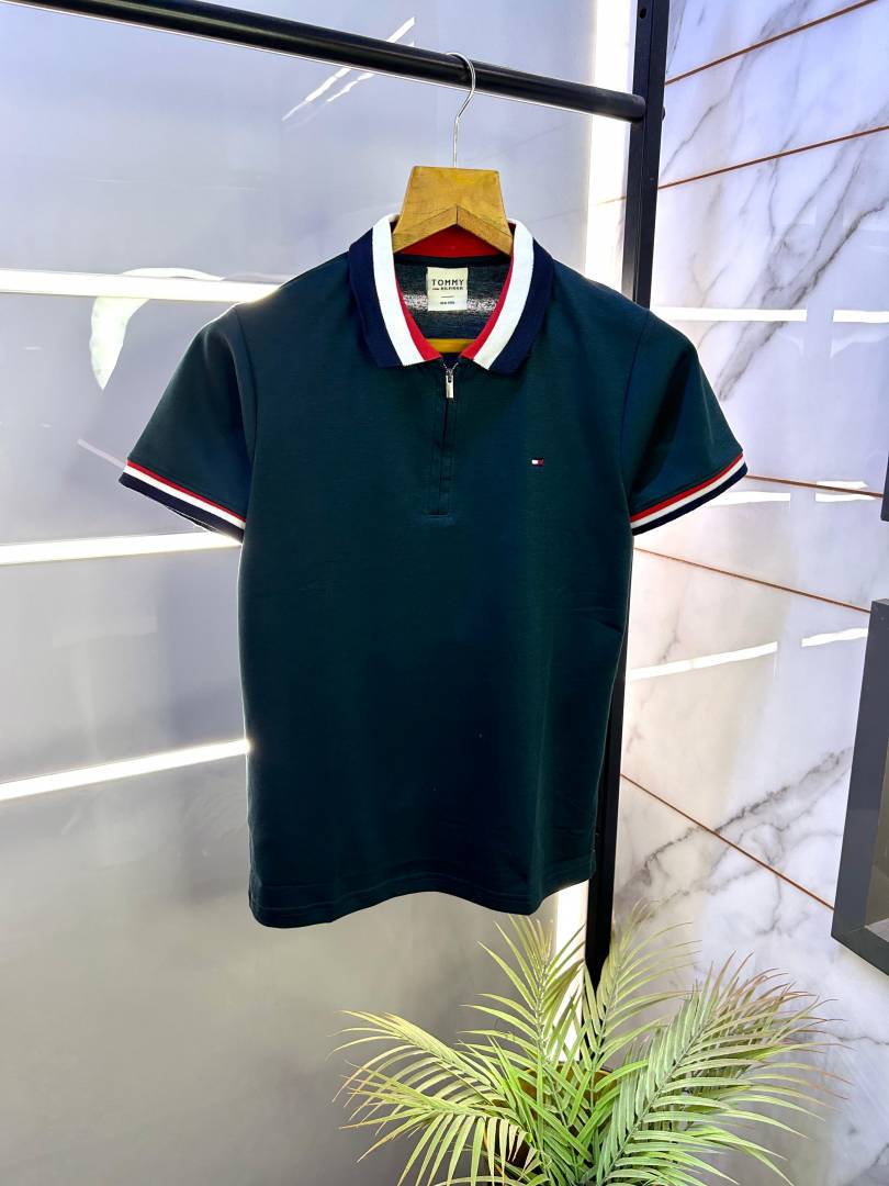 Tommy_Hilfiger Dark Green Zipper Polo Premium Collar Neck T-shirt F2820-DGR