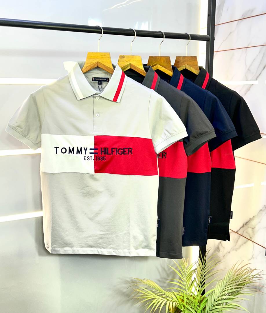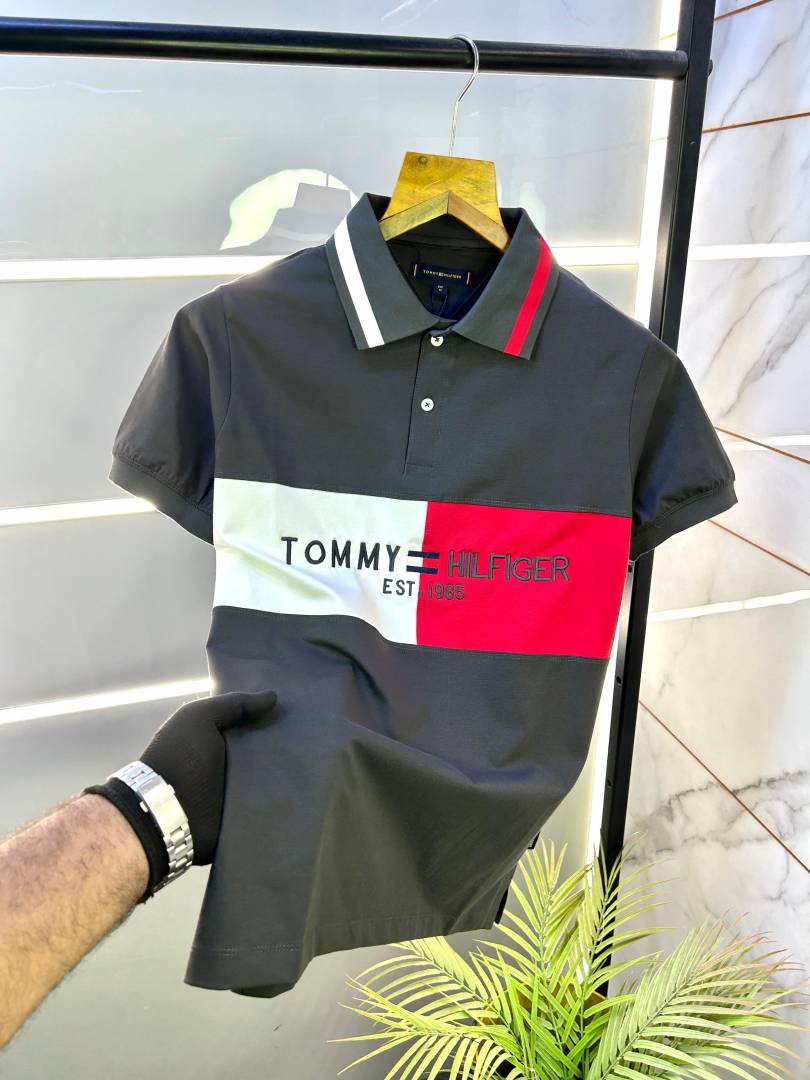 Tommy_Hilfiger Dark Grey Embroidery Print Premium Polo T-shirt F2836-DGY