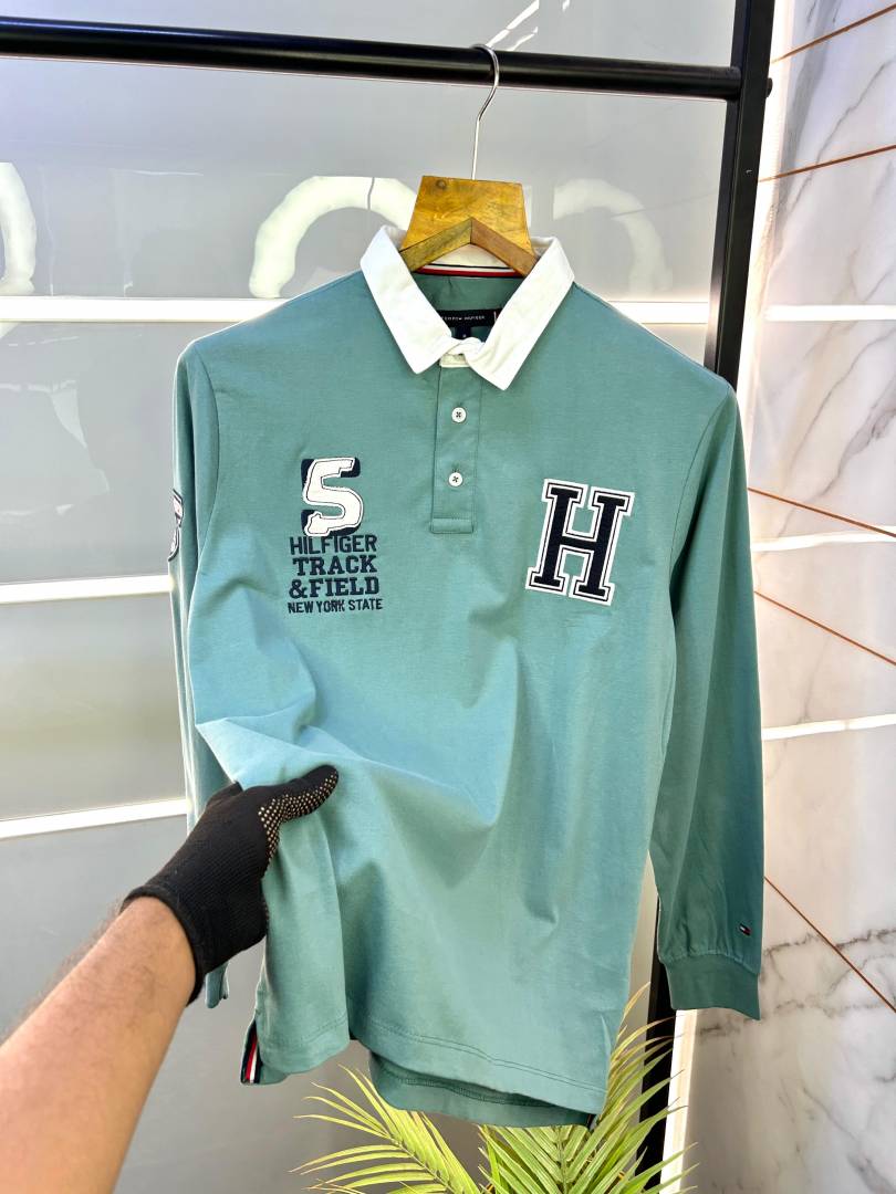 Tommy_Hilfiger Full Sleeves Green Polo Neck Premium Collar T-shirt GREE-M-F2017