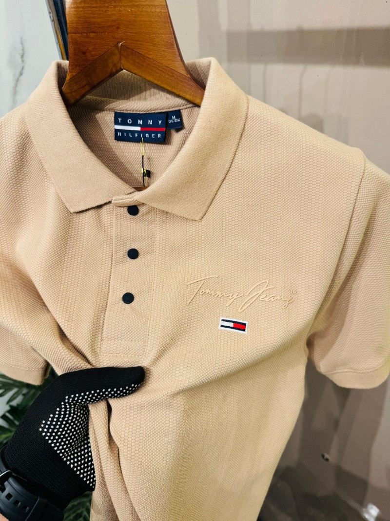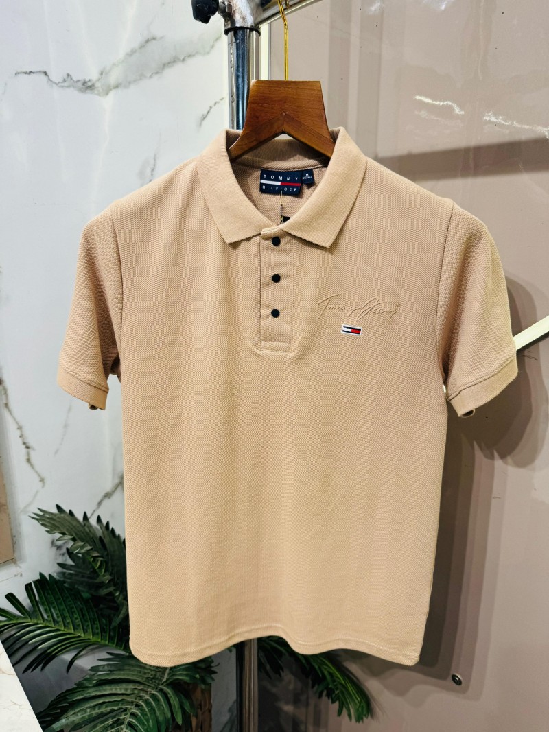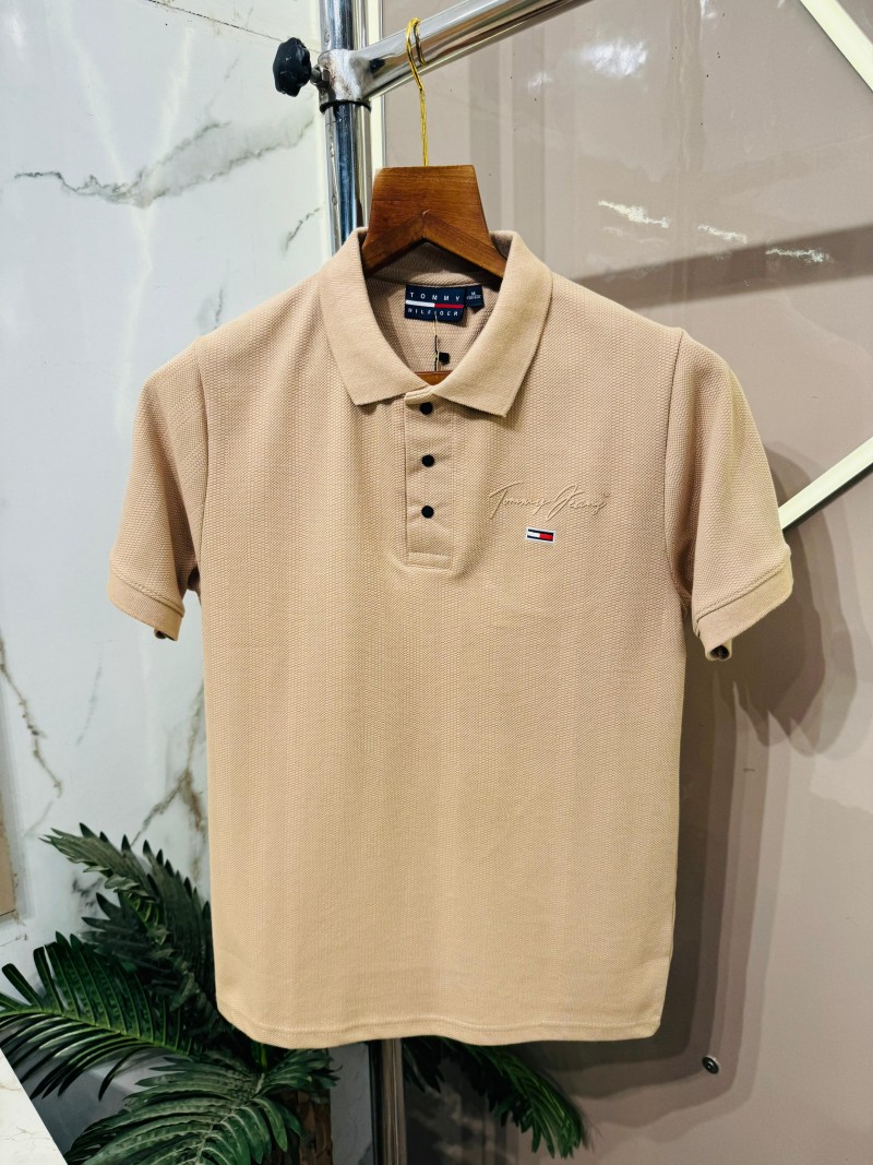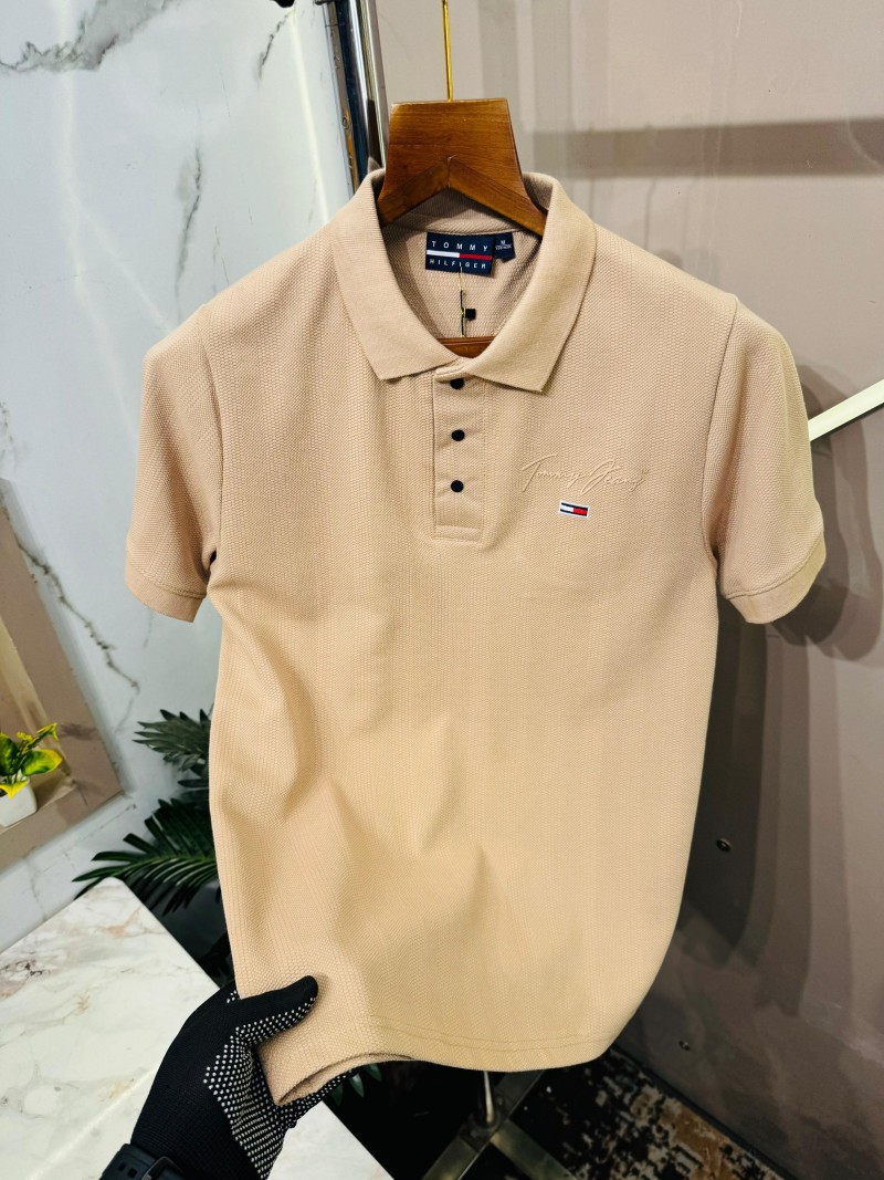 Arman i Exchange Beige Premium Polo TShirt with 240 gsm interlock cotton lycra fabric with Emboss Printed Logo 2592