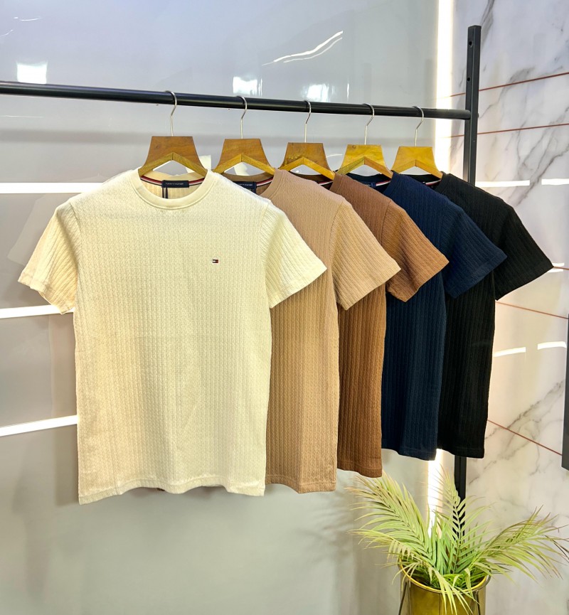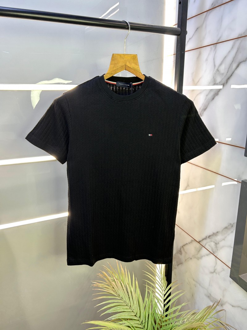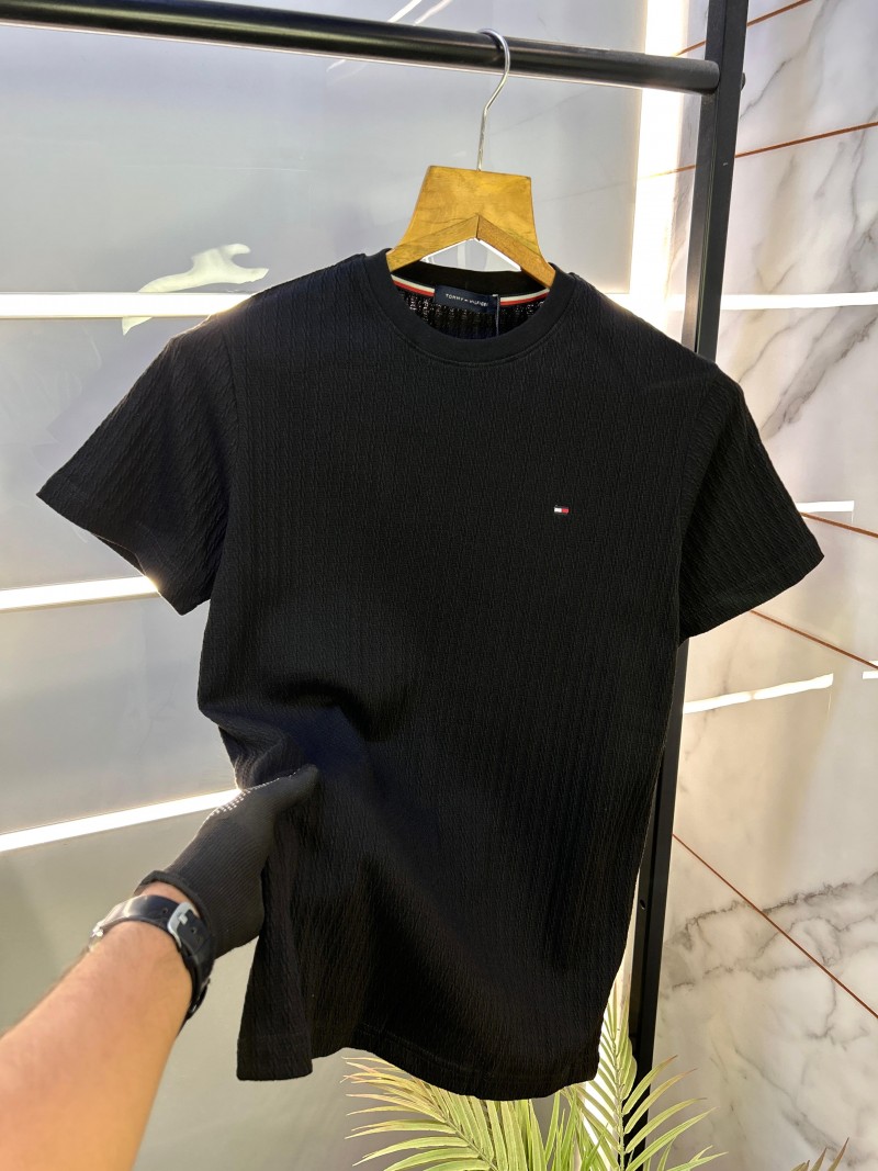 Sale Tommy_Hilfiger Knitted Black Super Premium Round Neck T-shirt F2482-BL