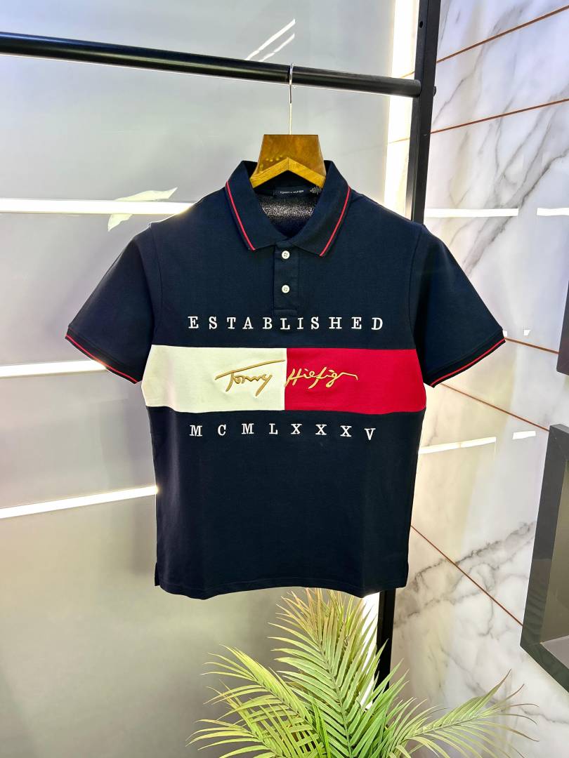 Tommy_Hilfiger Navy Embroidery Print Premium Polo T-shirt F2459-NY