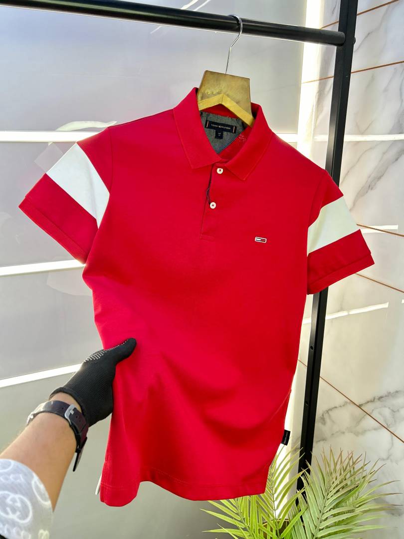 Tommy Hilfige r White Premium Polo TShirt with 240 gsm interlock cotton lycra fabric with Pocket Style 2548