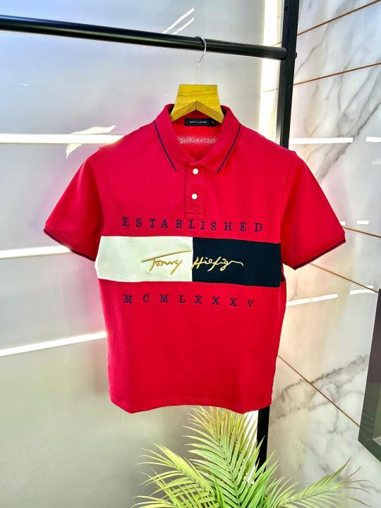 Tommy_Hilfiger Red Embroidery Print Premium Polo T-shirt F2459-RE