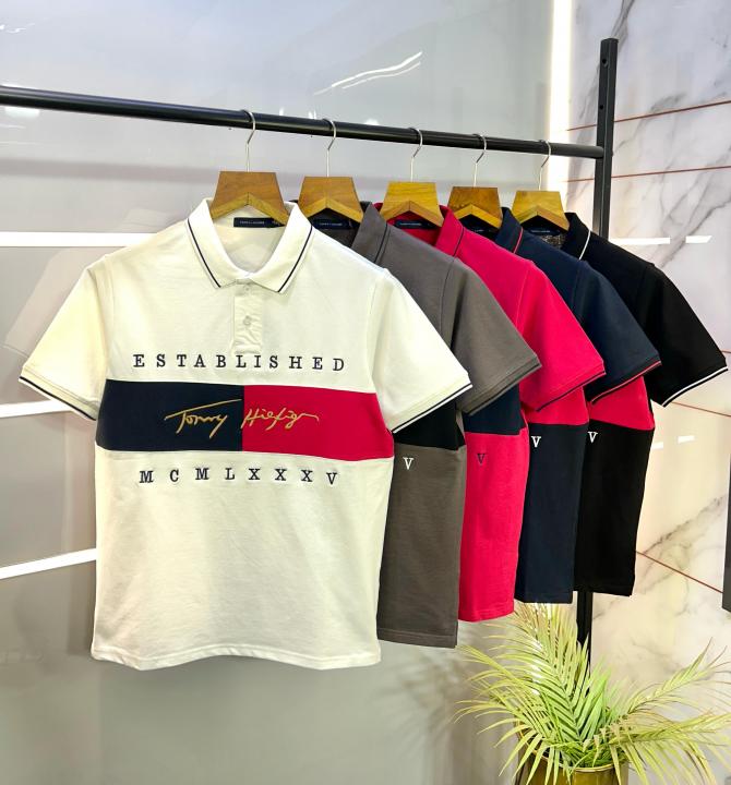 Tomm y Hilfiger Navy Blue Embroidery Logo Premium Polo T-Shirt sale offer (851)