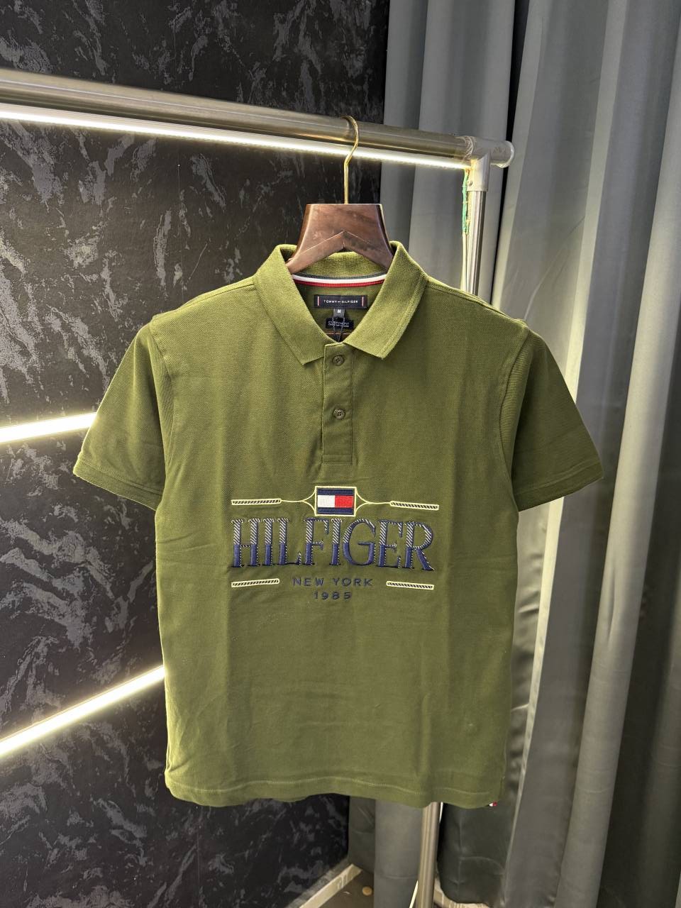 TOMMY.HILFIGER.IMPORTED.FRONT.EMBOSSED.LOGO.VERY.PREMIUM.POLO.NECK.TSHIRT.