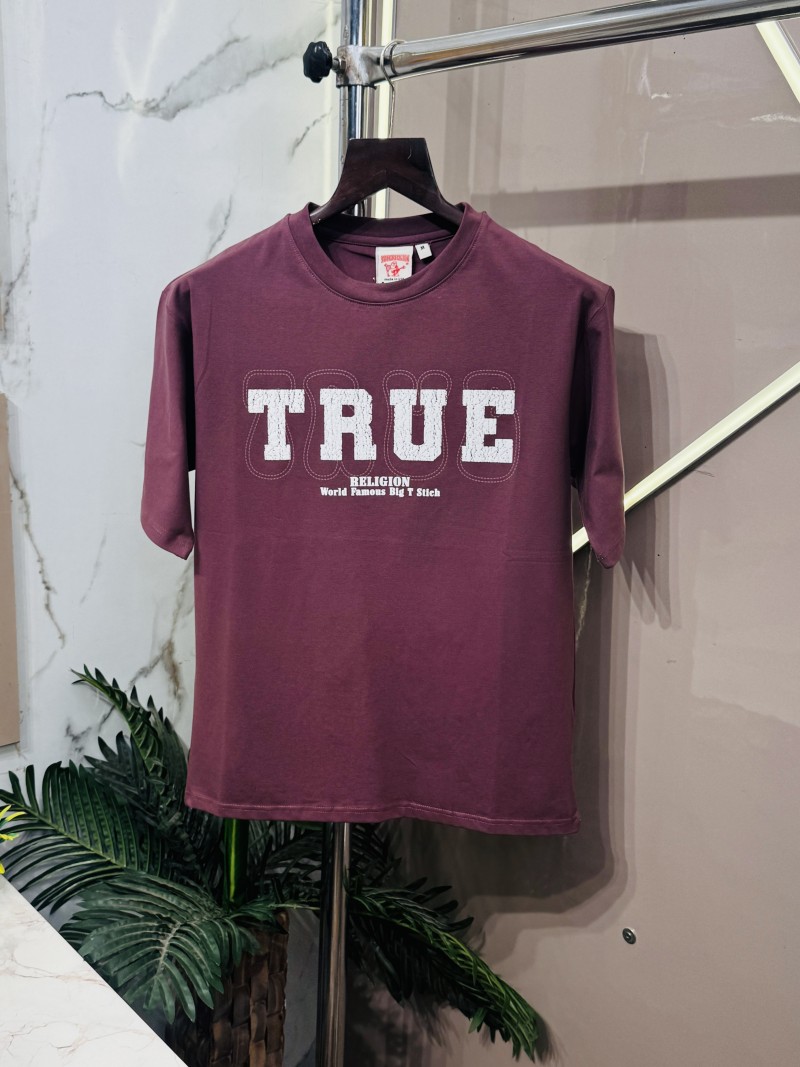True Religion Imported Heavy GSM Fabric Front Printed Drop Shoulder T-Shirt