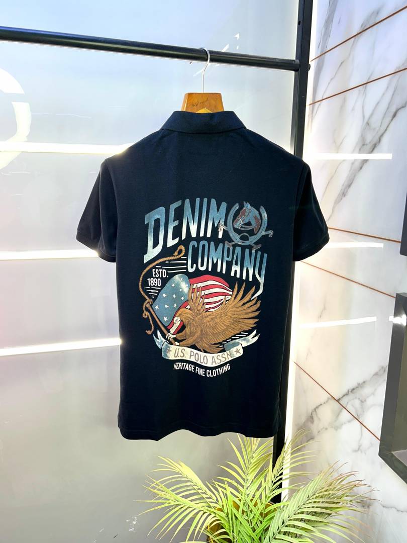 Us Polo Black Back Printed Collar Neck Premium T-shirt F2845-B1