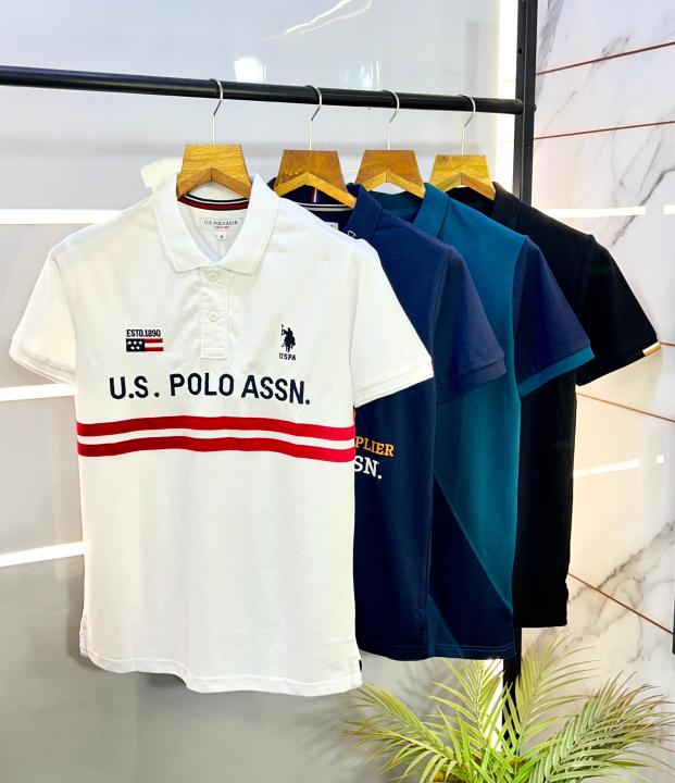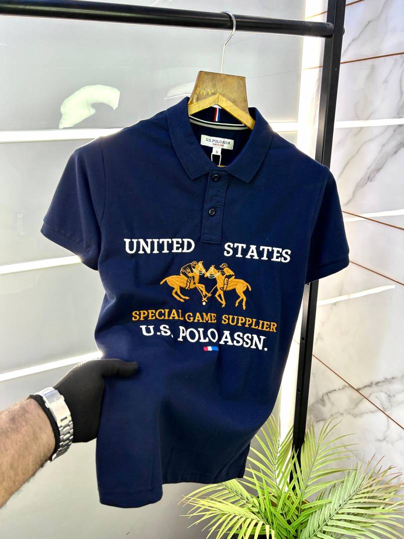Us Polo Navy Imported Embroidery Collar Neck Premium T-shirt F2731-NY