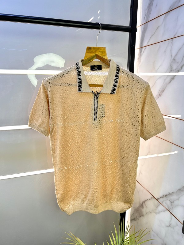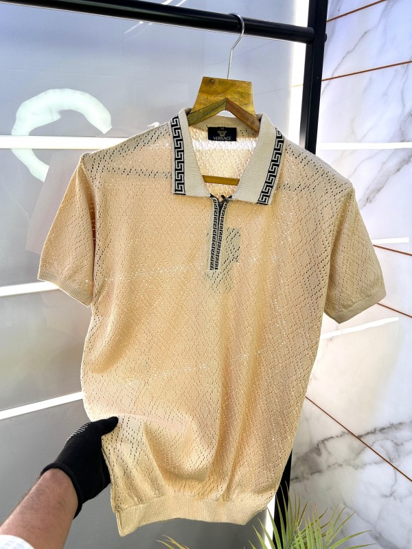 Sale Versace Brown Zipper Collar Neck Imported Premium T-shirt F2231-CR