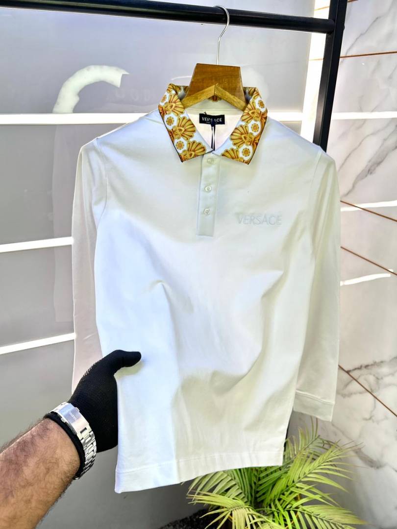 Versace White Polo Neck Full Sleeves Premium Collar T-shirt F3095-W1