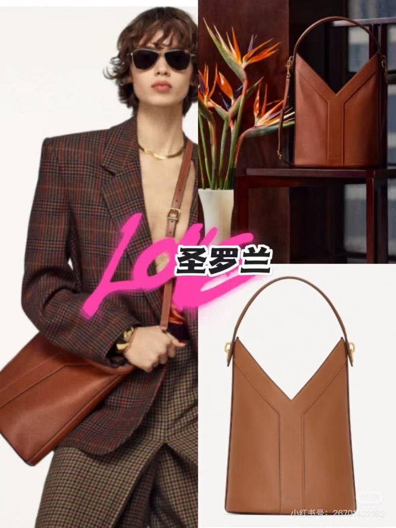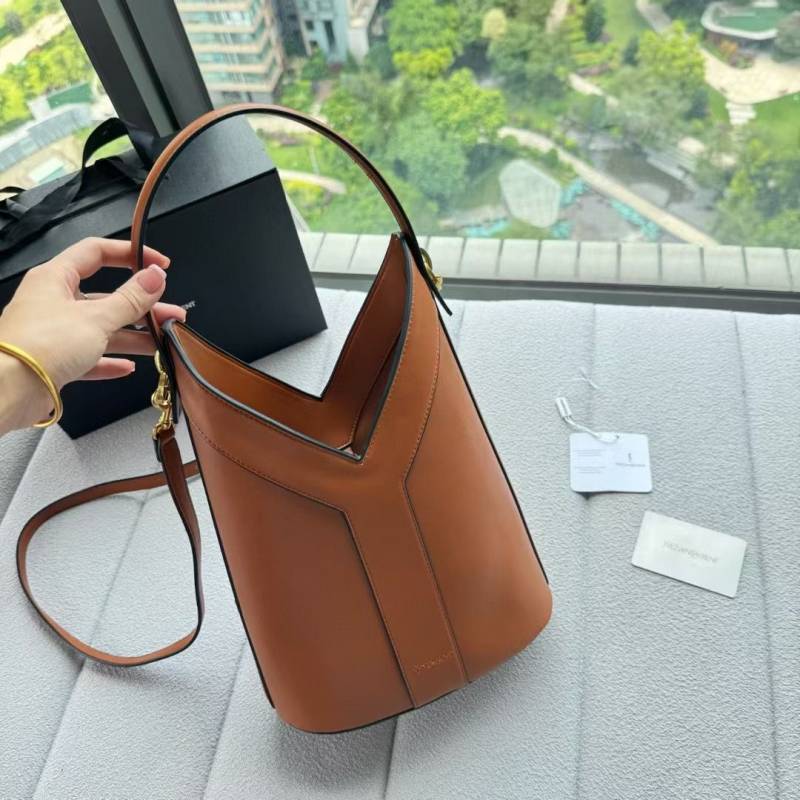 Ysl Y top handle bucket bag with dust bag(2535-brown)