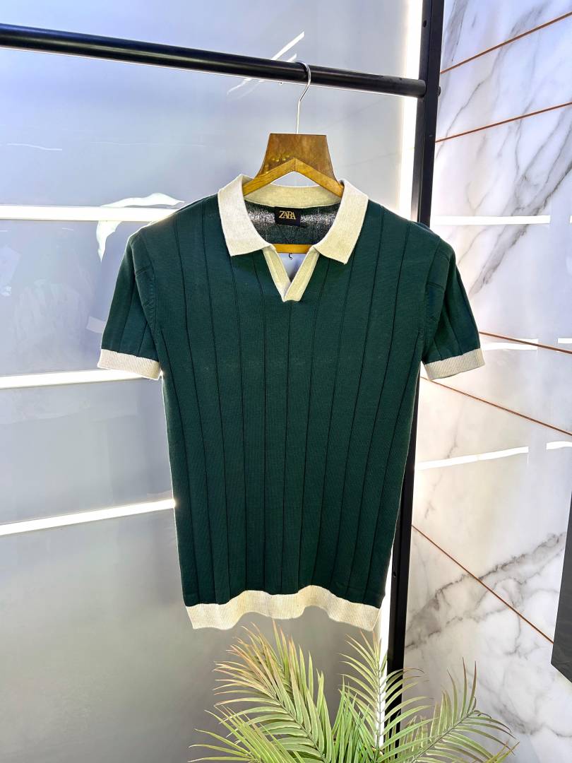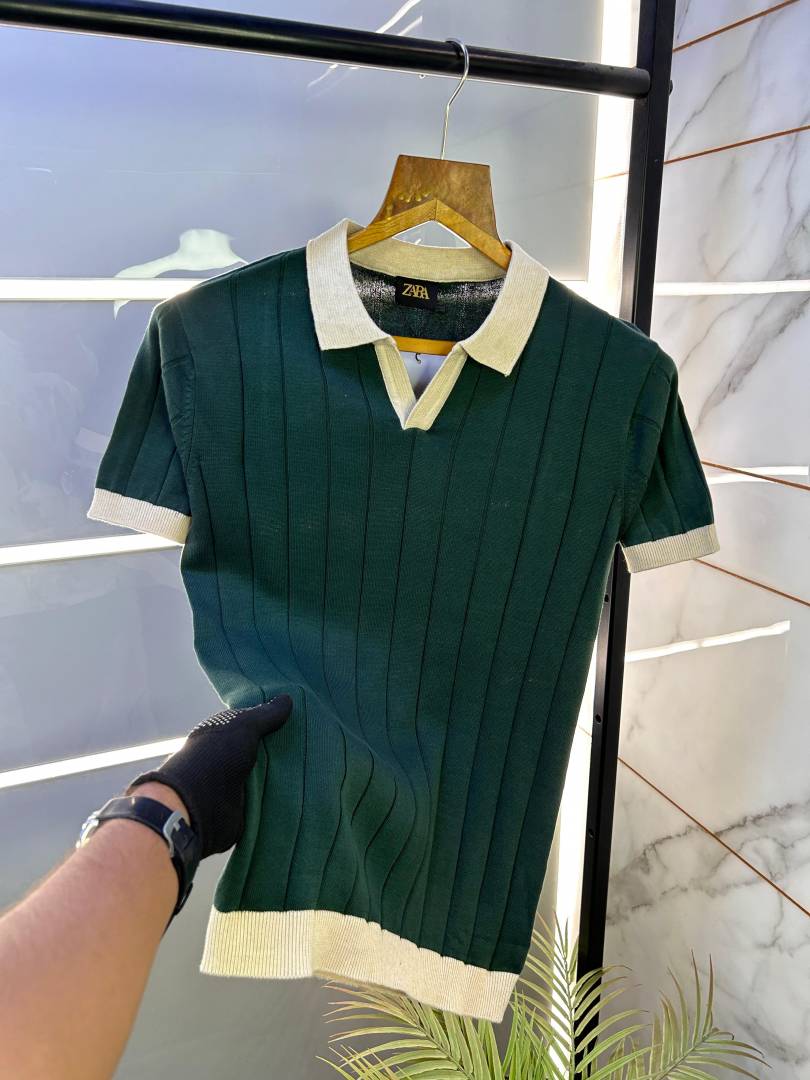Zar a Knitted Polo Green Super Premium Collar Neck T-shirt F2622-GR