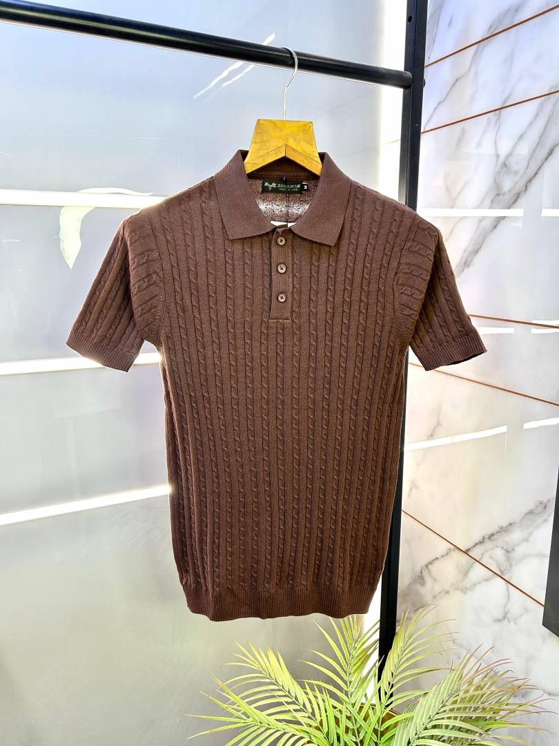 Zar a Knitted Brown Imported Super Premium Collar T-shirt F2829-BR